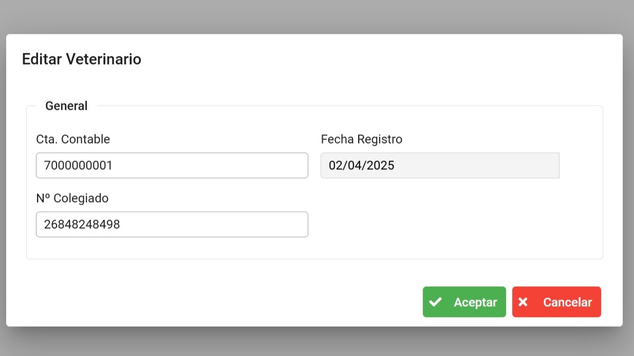 Se puede definir un veterinario por defecto, agilizando la creación de documentos y operaciones.